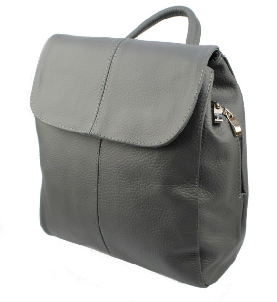 Grafitowy plecak skórzany NATALIA firmy MAGRE. Uszyty ze skóry naturalnej licowej, której elastyczność i miękkość daje duży komfort użytkowania, a wytrzymała skóra służy niezawodnie przez długie lata. Plecak ma trzy główne komory, z czego jedna jest zapinana na zamek błyskawiczny i ma wewnątrz kieszonki na telefon oraz dokumenty. Dodatkowy schowek o wymiarach 16 x 16 cm ukryto pod szelkami, gdzie wszyto również zabezpieczający suwak. Regulowane szelki mają długość około 87 cm, a dzięki możliwości spięcia ich zamkiem błyskawicznym, można wygodnie nosić plecak również na jednym ramieniu. Do trzymania w ręku służy mocne ucho u góry plecaka. Całość jest zapinana klapką na dwie solidne napy. Grafitowy plecak NATALIA ma wymiary: 32 x 33 x 10 cm.